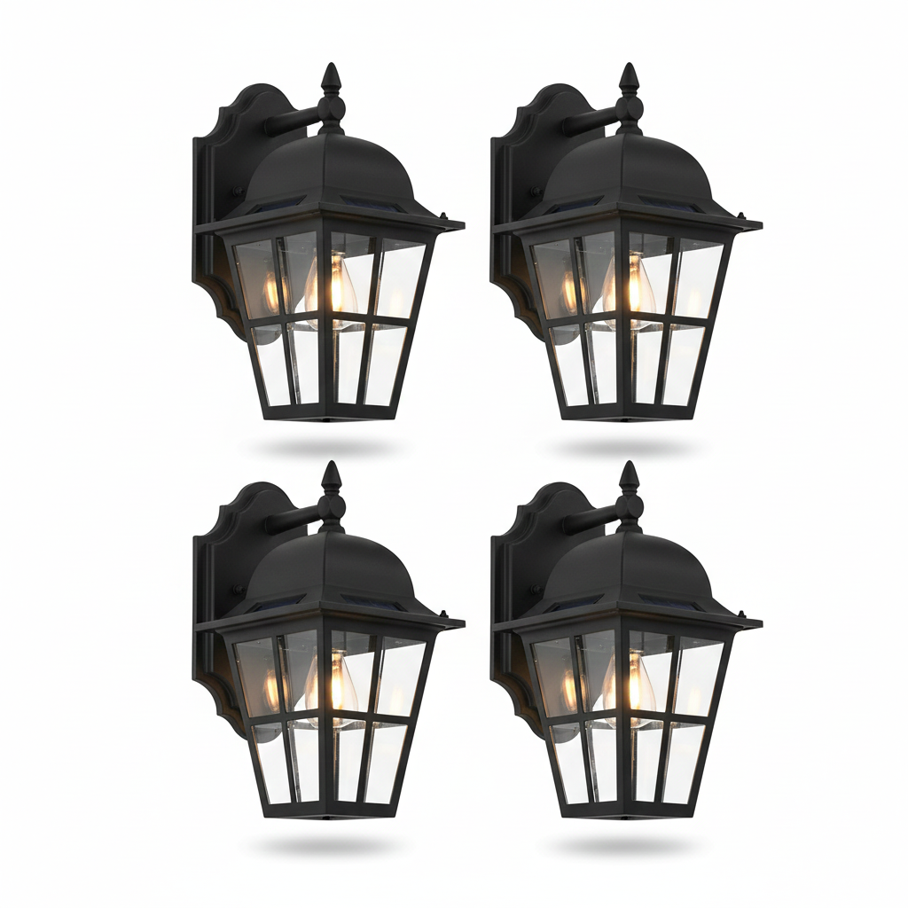 Light your paths with the elegance of a horse-drawn carriage era. These high-lumen solar lanterns feature beveled glass panes and a flickering flame effect.